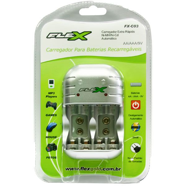 CARREGADOR DE PILHA/BATERIA AA/AAA/9V FLEX FX-C03